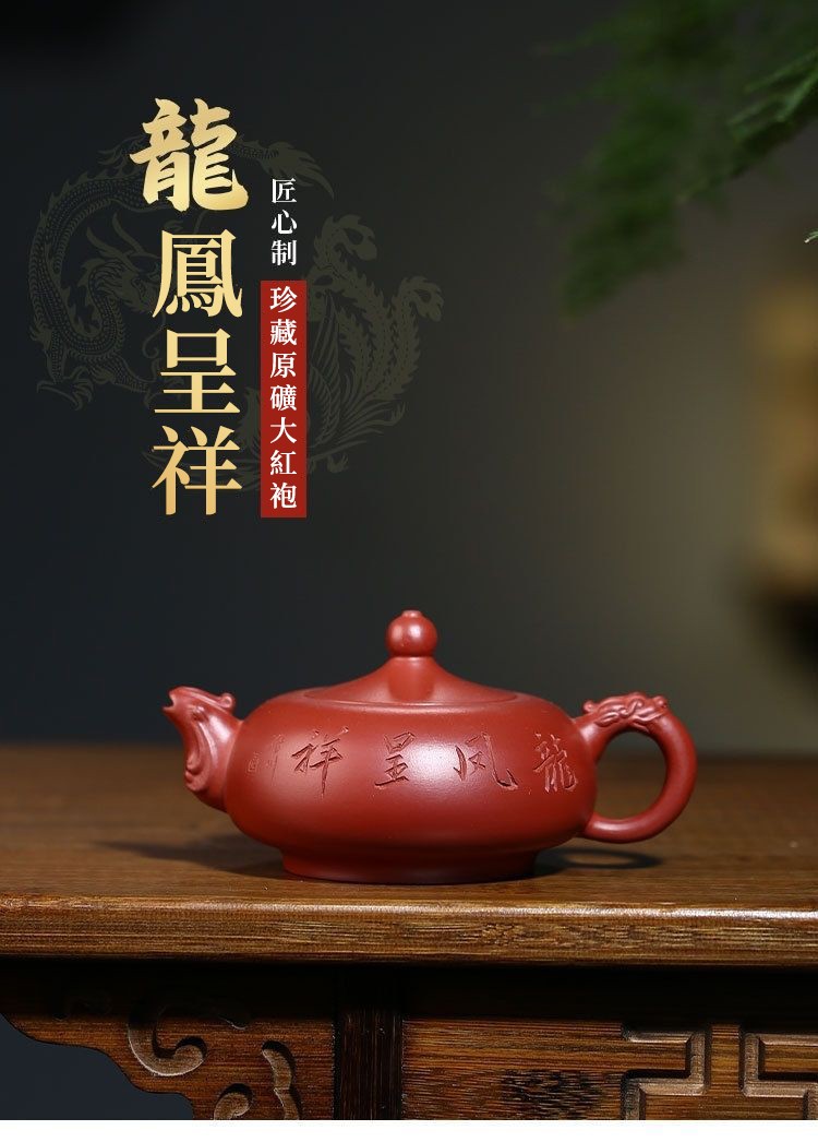 半小時前正宗宜興紫砂 ❘ 珍藏原礦大紅袍顧景舟純手工龍鳳呈祥紫砂壺230ml - 一泡而紅 / 龍鳳呈祥 / 安全包裝