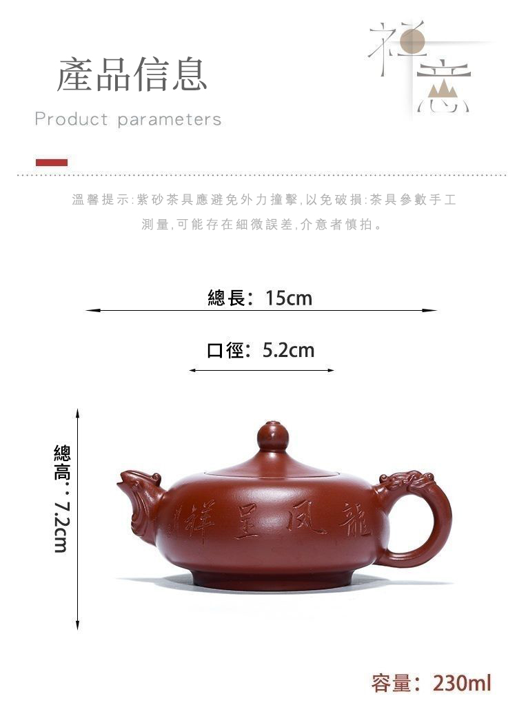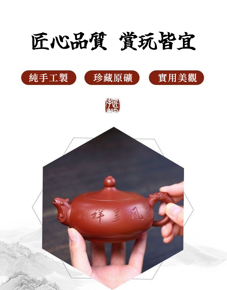 25分鐘前正宗宜興紫砂 ❘ 珍藏原礦大紅袍顧景舟純手工龍鳳呈祥紫砂壺230ml - 一泡而紅 / 龍鳳呈祥 / 安全包裝