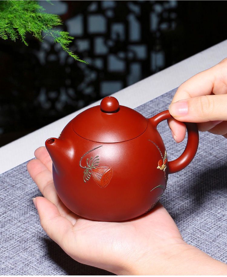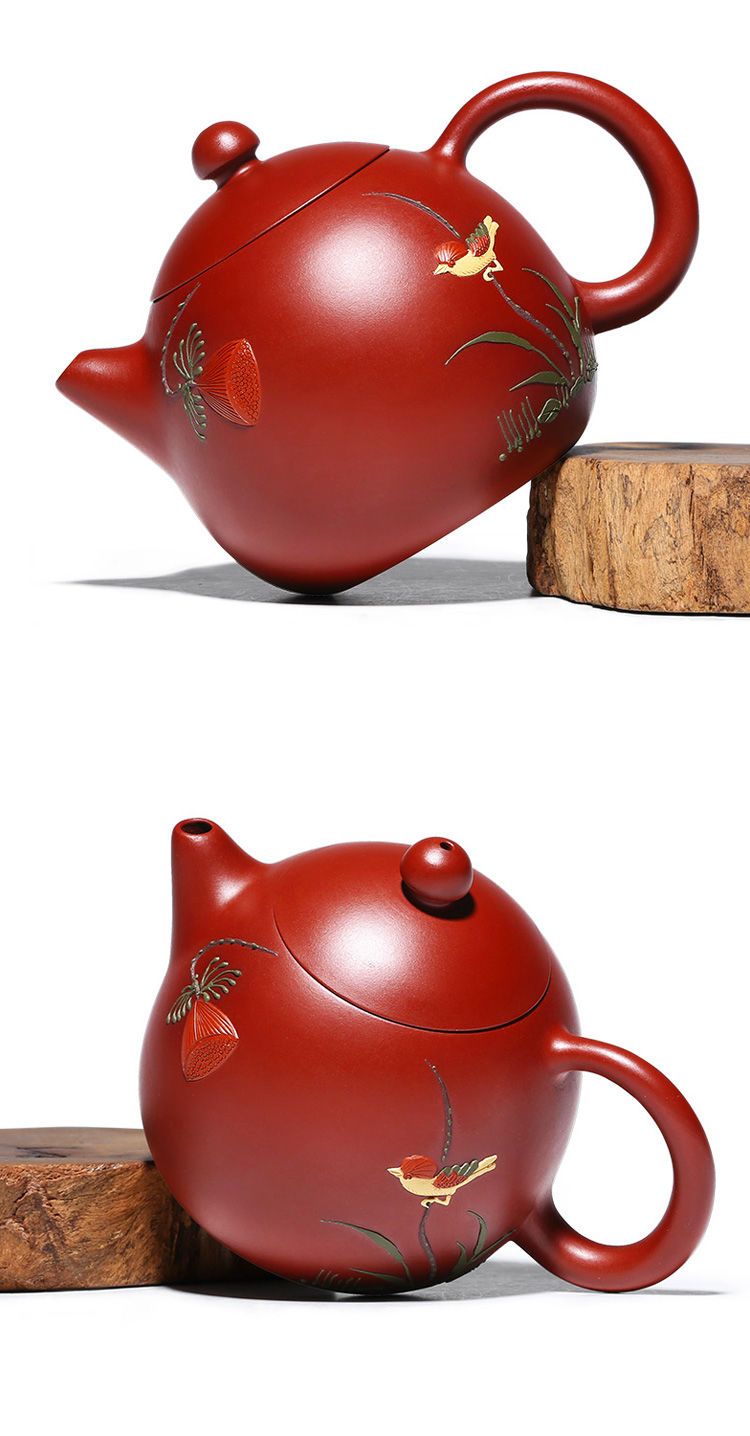 ✩ 絕版收藏!正宗宜興紫砂朱泥長嘴供春壺 ❘ 黃金大容量500cc ❘ 純手工浮雕匠製,泡茶更香