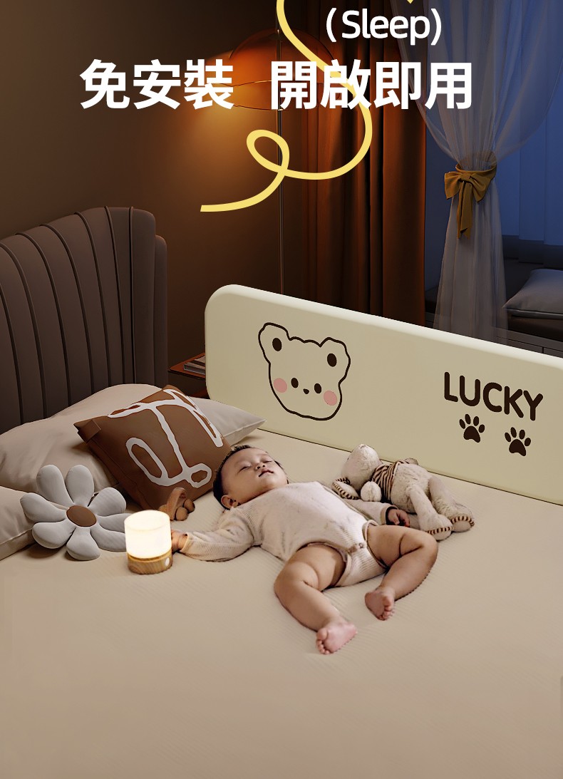 4分鐘前隨時隨地守護寶寶睡眠安全!【多貝嬰】可折疊防摔防護欄,免安裝,打開即用,旅行出遊方便攜帶 - 1.8米-免安裝折疊款