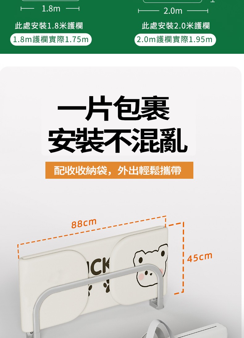 2分鐘前隨時隨地守護寶寶睡眠安全!【多貝嬰】可折疊防摔防護欄,免安裝,打開即用,旅行出遊方便攜帶 - 1.8米-免安裝折疊款