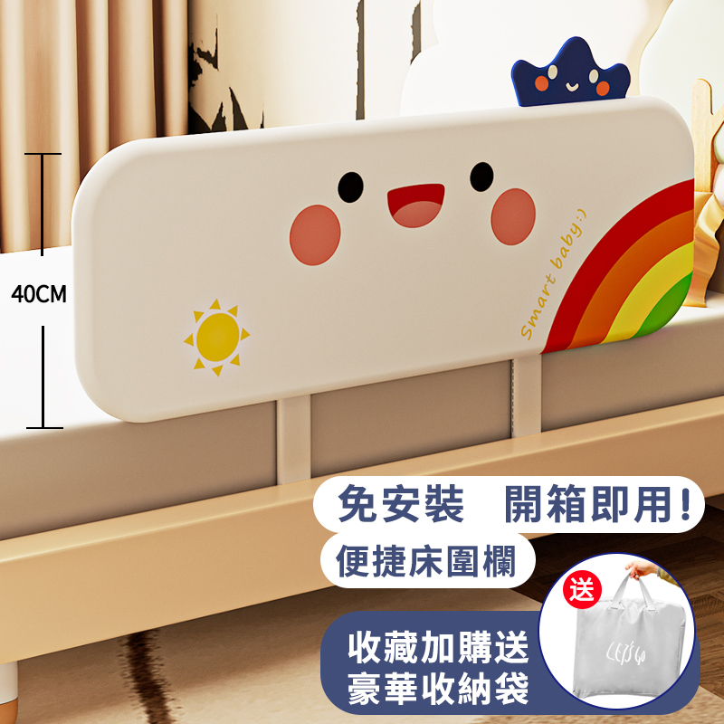 12分鐘前隨時隨地守護寶寶睡眠安全!【多貝嬰】可折疊防摔防護欄,免安裝,打開即用,旅行出遊方便攜帶 - 0.8米-免安裝折疊款