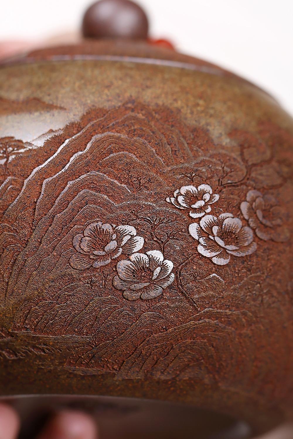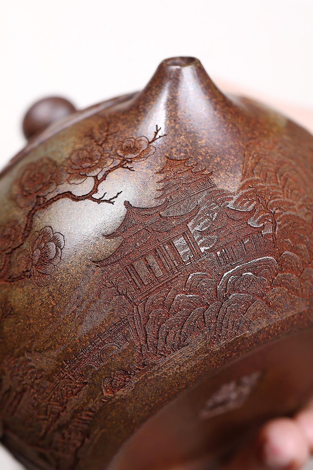 ✩ 絕版收藏!正宗宜興紫砂朱泥長嘴供春壺 ❘ 黃金大容量500cc ❘ 純手工浮雕匠製,泡茶更香