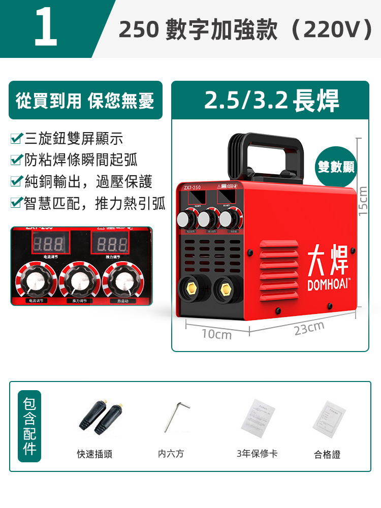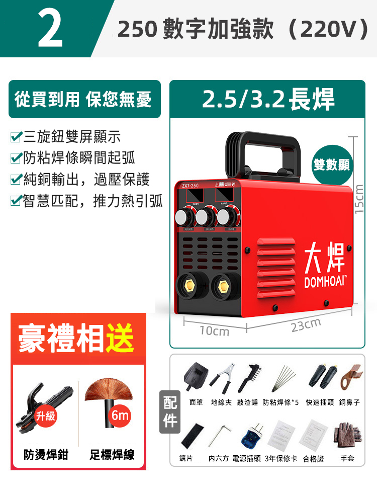 20分鐘前業內焊機領軍品牌【德國DOMHOAI】全新二代數字化電焊機,瞬間起弧,長焊4.0焊條 - 【250-220V】數字加強款+基礎套餐