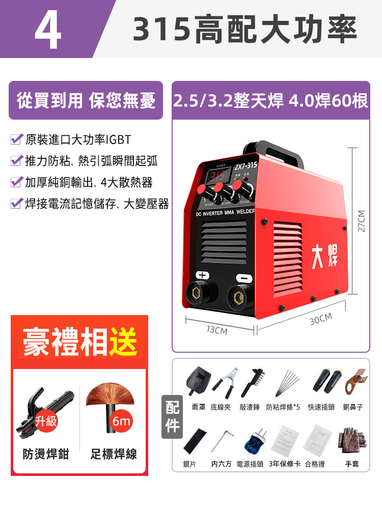 12分鐘前業內焊機領軍品牌【德國DOMHOAI】全新二代數字化電焊機,瞬間起弧,長焊4.0焊條 - 【315-220V/380V】工業高配大力王款+防燙焊鉗+6米焊線+大禮包