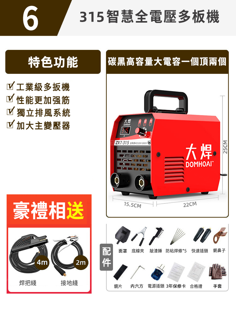 7分鐘前業內焊機領軍品牌【德國DOMHOAI】全新二代數字化電焊機,瞬間起弧,長焊4.0焊條 - 【315-220V/380V】智慧全電壓多板機+2米接地線+4米焊把線+大禮包