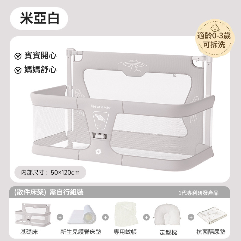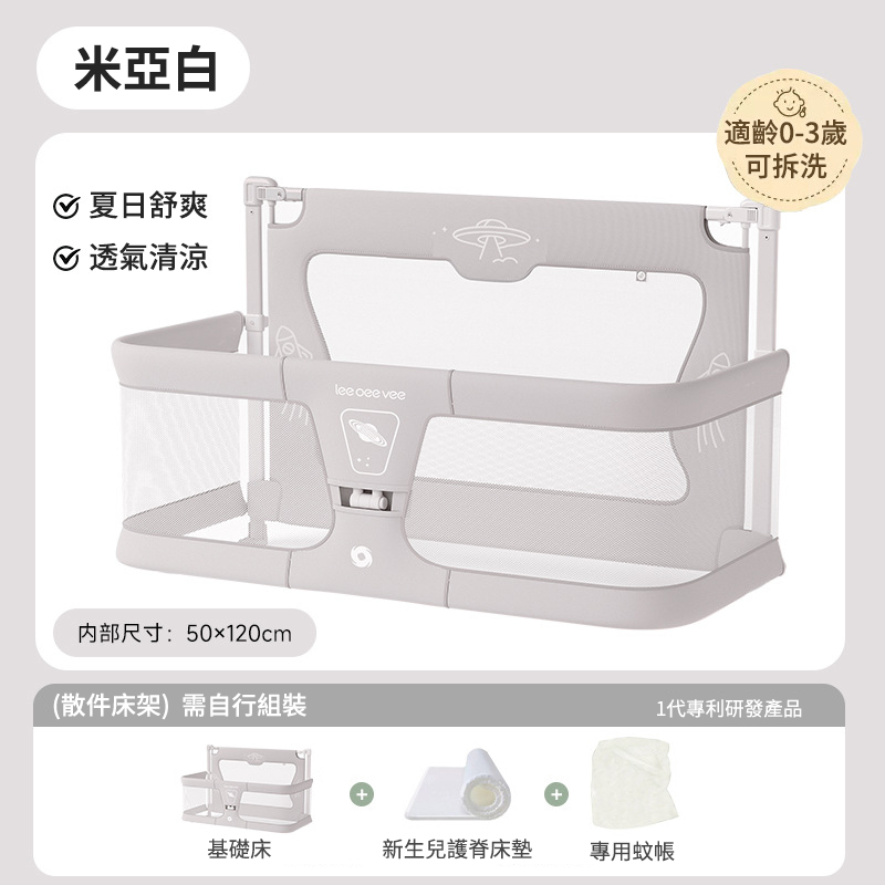 2分鐘前Leeoeevee嬰兒床寶寶床 新生兒多功能小床 便攜式移動床中床 防護欄 - 【夏日特惠】床+專用蚊帳【適齡0-3歲】可拆洗