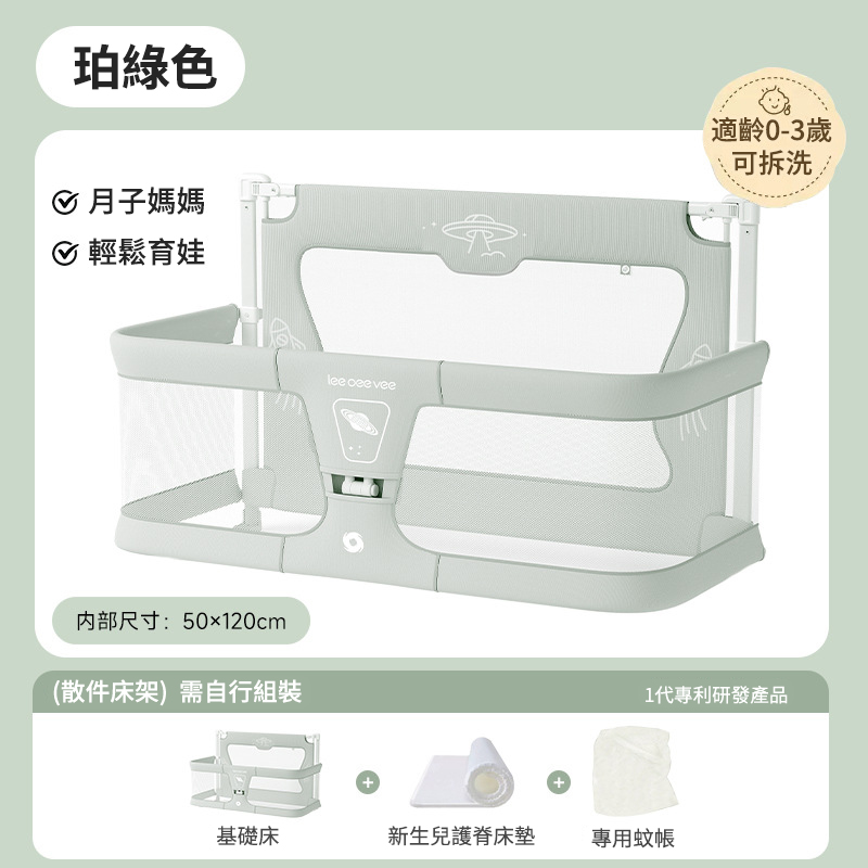 半小時前Leeoeevee嬰兒床寶寶床 新生兒多功能小床 便攜式移動床中床 防護欄 - 【月子媽媽推薦款】床+新生兒護脊床墊+專用蚊帳【適齡0-3歲】可拆洗