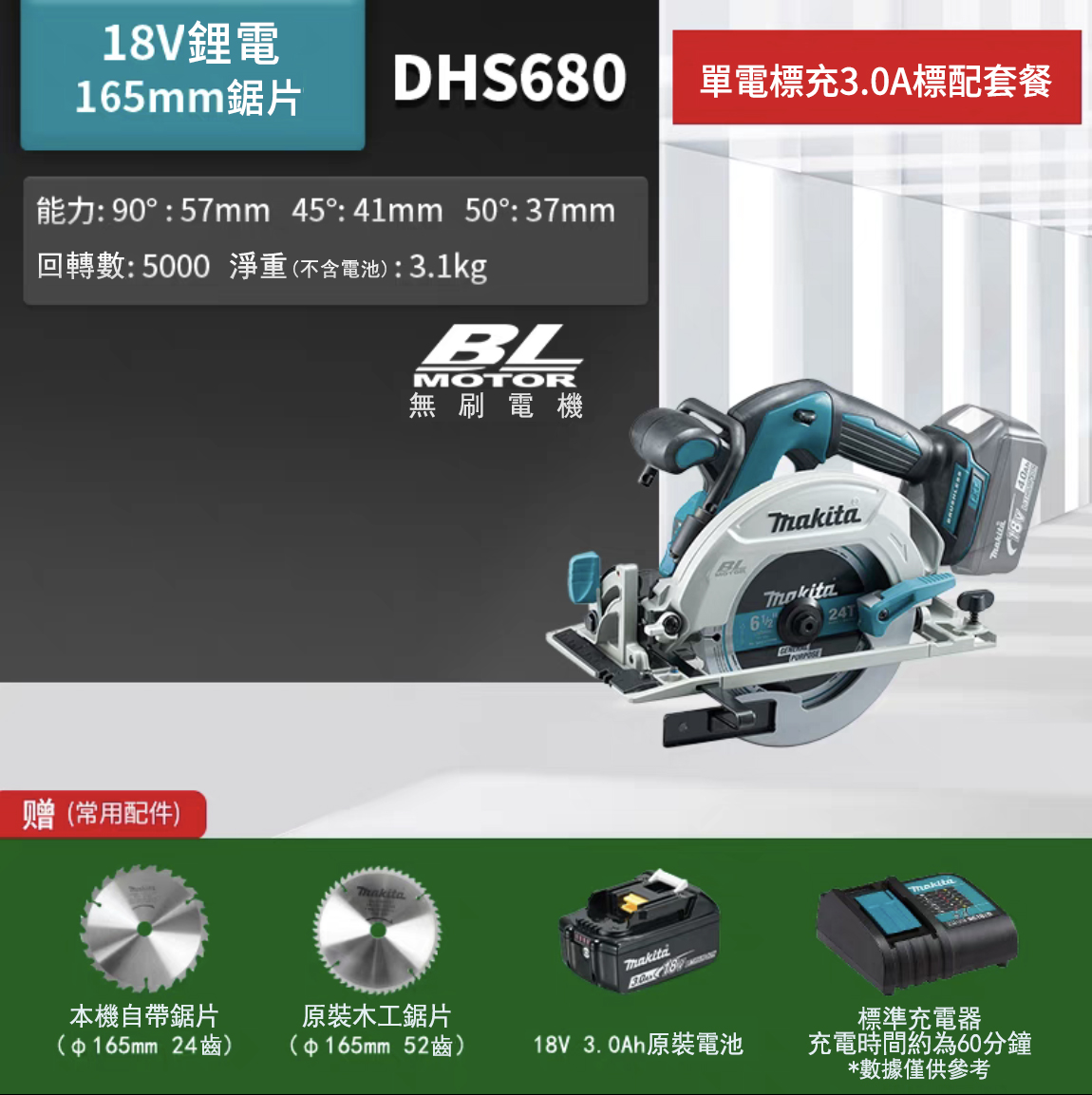 5分鐘前「牧田/Makita」DHS680 18V 4寸、7寸 多功能鋰電園鋸 大容量鋰電池 馬力強勁切割不卡殼 - DHS680【7寸】單電3.0Ah電池+兩鋸片