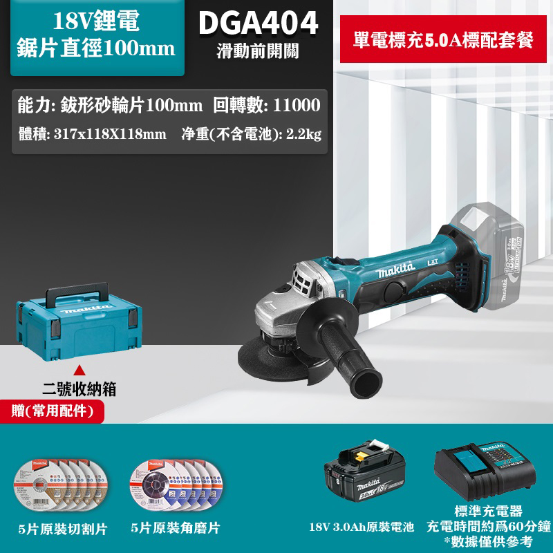 12分鐘前【Makita/牧田】DGA404 18V充電式砂輪機,變速!是同類產品中最安靜的角磨機之一 - 18V鋰電單電快充5.0Ah組